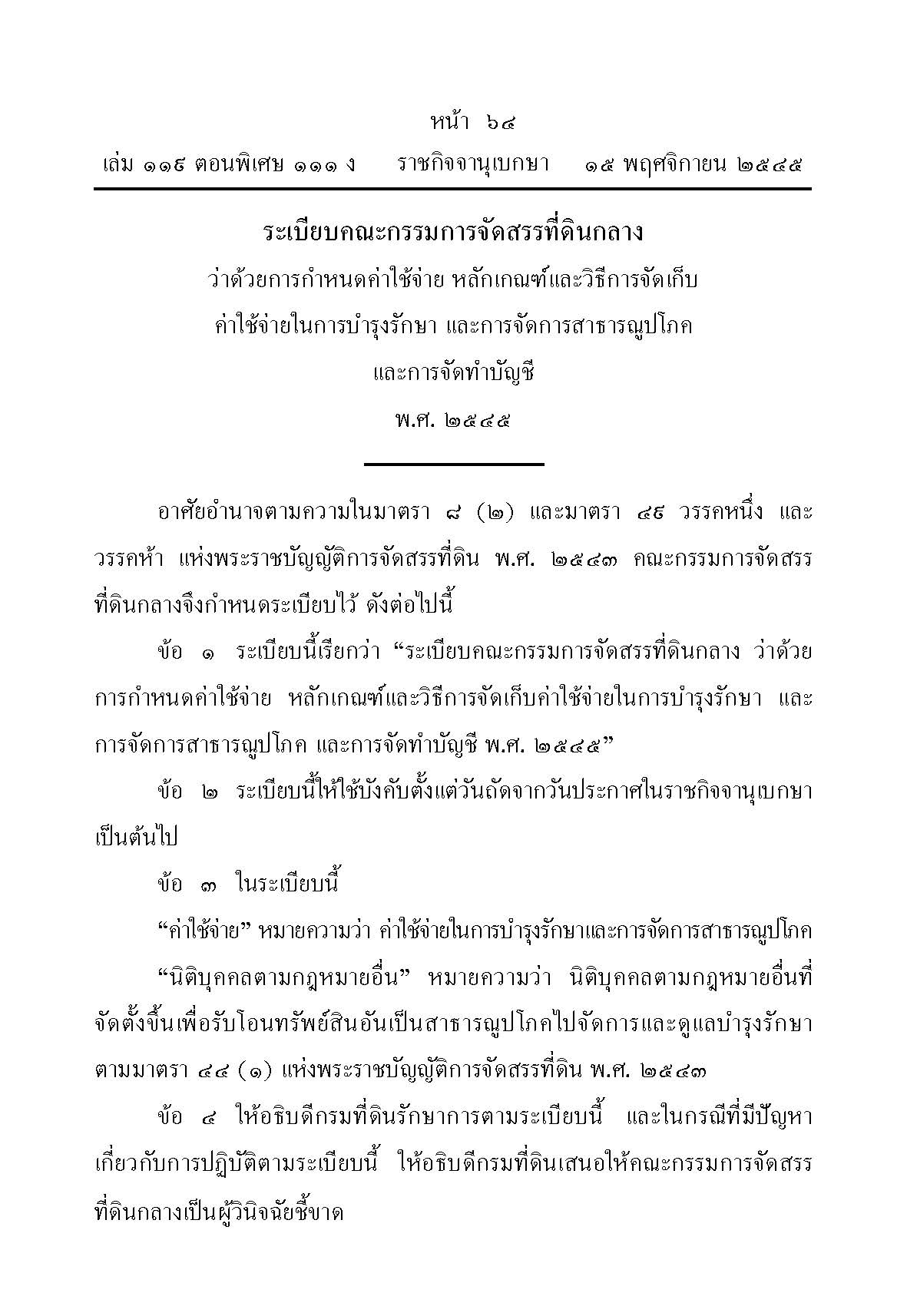 ระเบียบคณะกรรมการจัดสรรที่ดินกลาง ว่าด้วยหลักเกณฑ์และวิธีการจัดเก็บค่าใช้จ่ายในการบำรุงรักษา และการจัดการสาธารณูปโภค และการจัดทำบัญชี พ.ศ.2545
