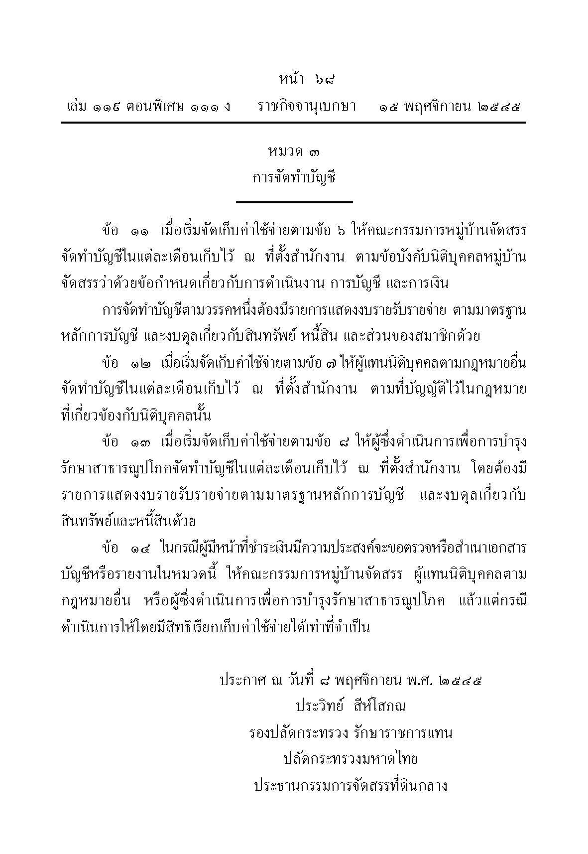 หลักเกณฑ์และวิธีการจัดเก็บค่าใช้จ่ายในการบำรุงรักษาและการจัดการสาธารณูปโภค และการจัดทำบัญชีให้เป็นไปตามระเบียบที่คณะกรรมการจัดสรรที่ดินกลางกำหนด