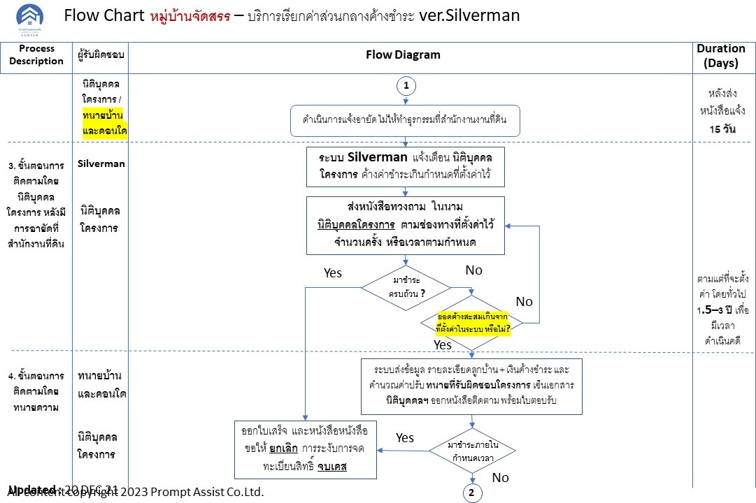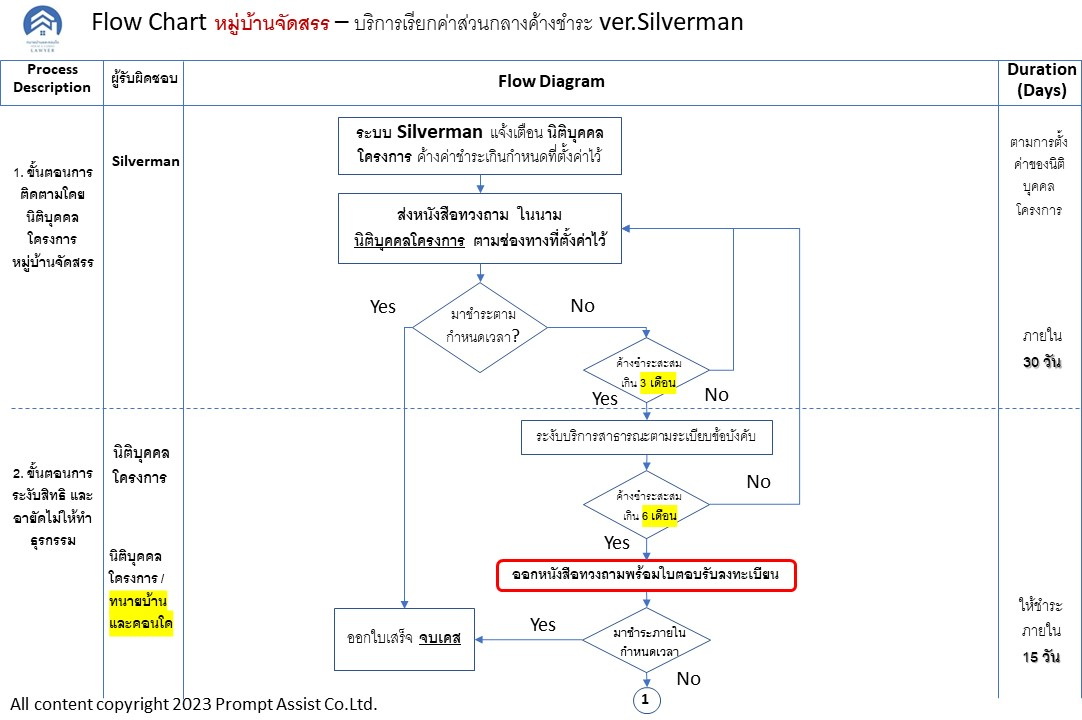 1. กำหนดค่าปรับ และค่าดำเนินการติดตามทวงถาม ให้ครบถ้วนในระเบียบข้อบังคับของนิติบุคคล